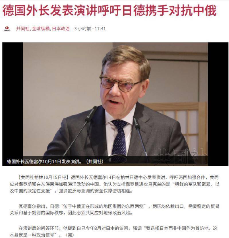 10月14日,德国外长瓦德富尔在柏林日德中心发表演讲时,呼吁日本与德国加强合作成都正规配资公司有哪些,共同对抗俄罗斯和在东海、南海加强海洋活动的中国。他认为支撑俄罗斯进攻乌克兰的是“朝鲜的军队和武器,以及中国的决定性支援”,强调欧洲与亚洲的安全保障密切相连。