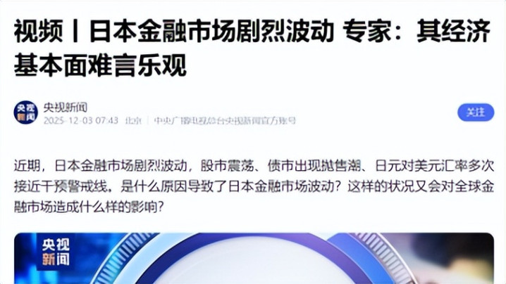 央视新闻《视频丨日本金融市场剧烈波动 专家:其经济基本面难言乐观》